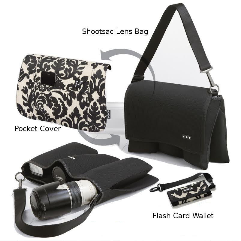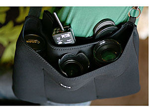 The SHOOTSAC LENSBAG comfortably holds 3 lenses and other shooting accessories safely and conveniently at your fingertips. And...still manages to fold completely flat for super easy transportation and storage. It's the perfect complement to your current camera bag.